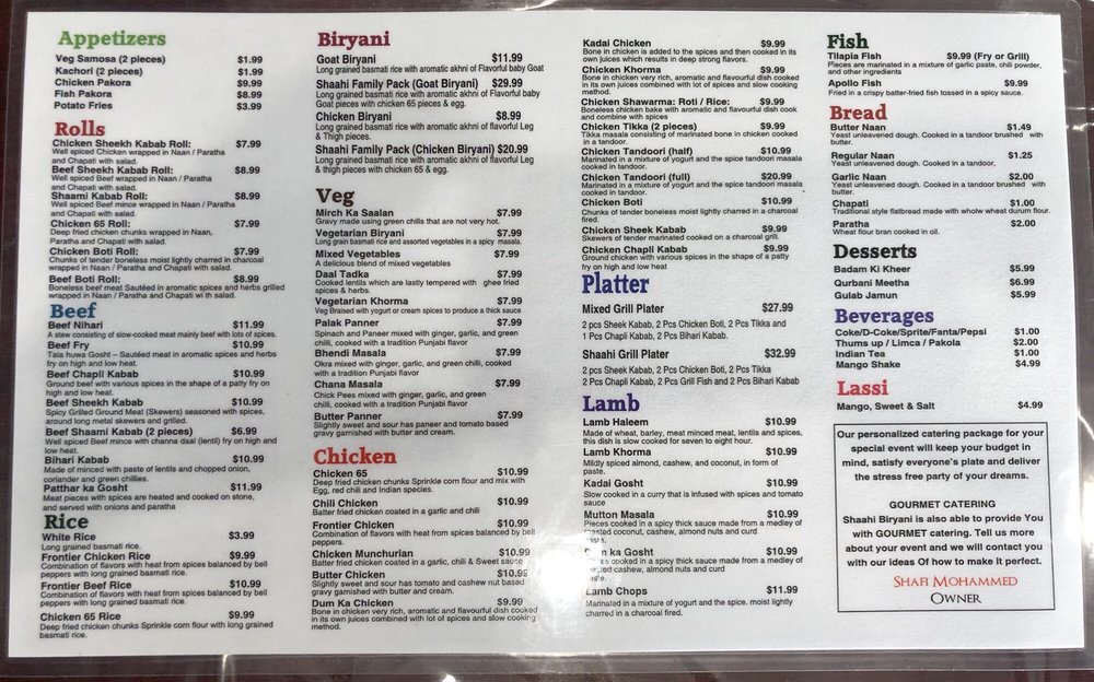 Shaahi Biryani, a Pakistani-Indian restaurant located in Glendale Heights, Illinois, offers a variety of delicious dishes with a range of utilities for convenience. From vegetarian options to alcohol and happy hour specials, Shaahi Biryani caters to various preferences. Customer reviews rave about their authentic Hyderabadi goat biryani and flavorful beef chapli kebab. The restaurant's cozy ambiance and prompt service have garnered praise from patrons. A must-try is their renowned Lamb Haleem, considered the best in town. While some dishes like the dry chicken pakora may not hit the mark, overall, Shaahi Biryani stands out for its delectable offerings and efficient service, making it a top choice for Indian cuisine enthusiasts in the Chicagoland area.